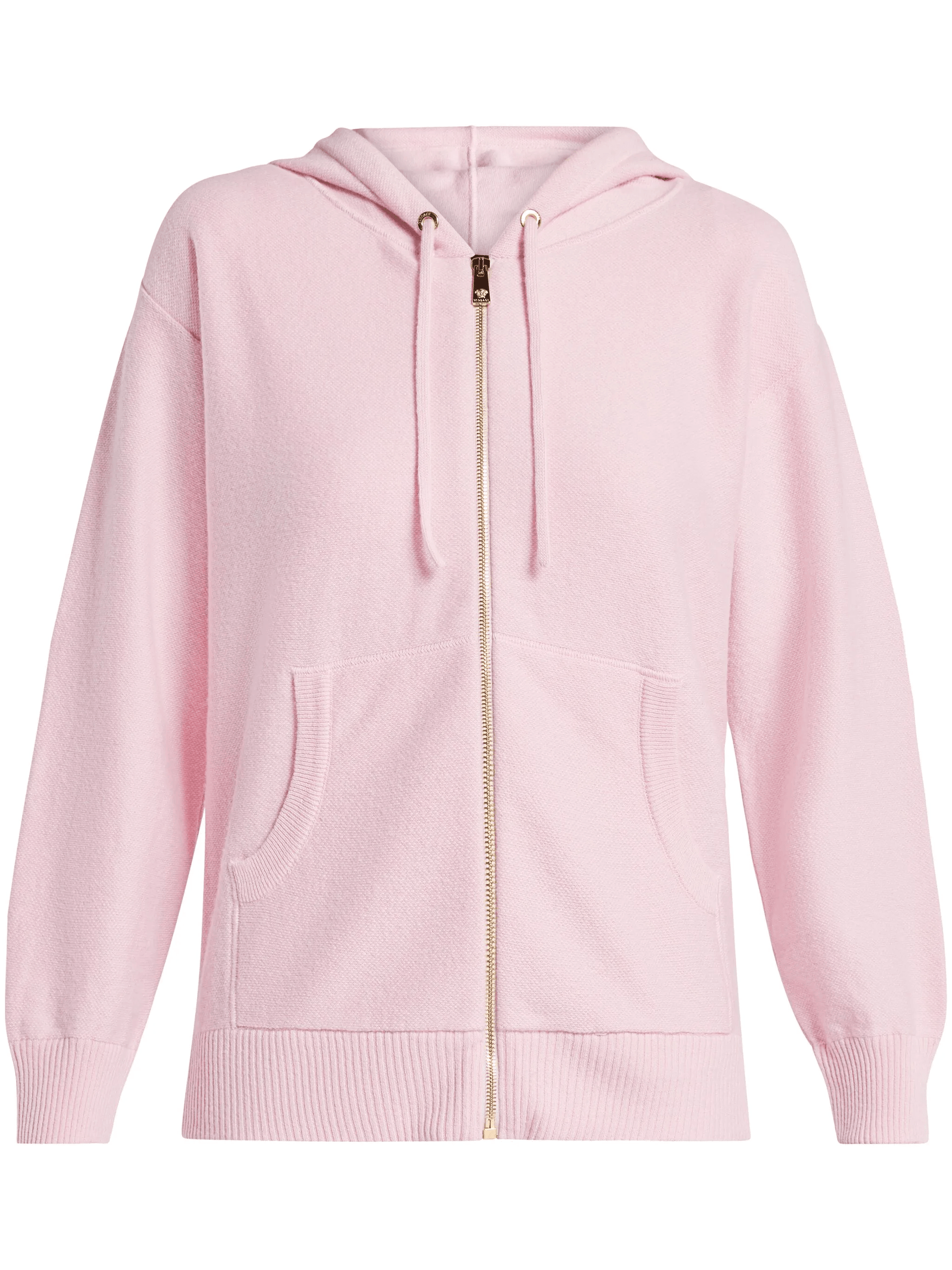 Unleash your inner fashion icon with the Versace Medusa hoodie. This luxurious wool and cashmere blend hoodie is highlighted by its powder light pink color and features a front zip fastening, drawstring hood, and ribbed cuffs and hem. Stay warm and stylish with this must-have piece.