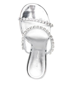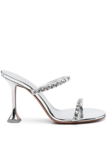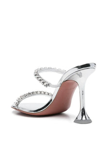 Ditch your boring heels and step into the spotlight with Amina Muaddi's 95mm Gigi mules. The silver-tone finish adds a touch of glamour while the branded footbed guarantees comfort. Adorned with sparkling crystal embellishments, these mules are a showstopper. Comes with a protective dust bag for easy storage.