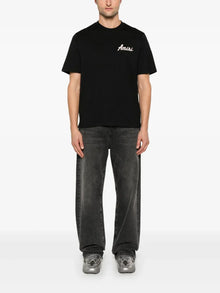 This AMIRI City T-shirt combines classic style with modern comfort. Crafted from soft black cotton jersey, it features a subtle flocked logo that adds a touch of sophistication. The crew neck and short sleeves provide a timeless fit, while the straight hem ensures a clean silhouette. Perfect for elevating your everyday wardrobe with effortless style.