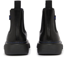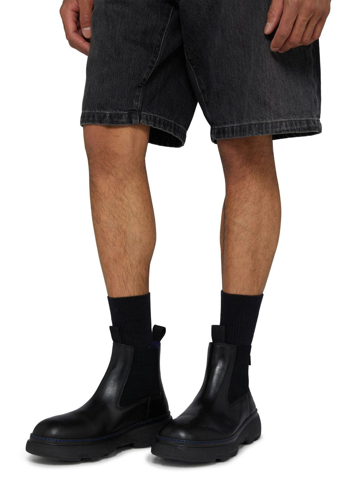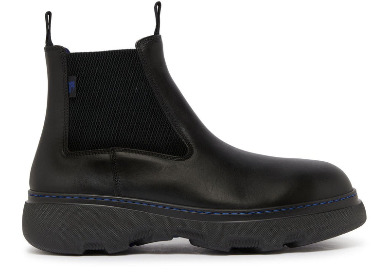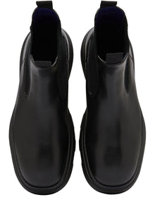 Add a touch of sophistication to your wardrobe with BURBERRY's Creeper calfskin shoes. These elegant Chelsea boots feature a round toe design and sleek block heel, perfect for any occasion. The elasticated sides and leather loop make them easy to slip on and off, while visible stitching adds a touch of style.