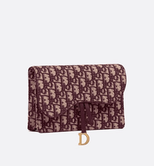 Large Saddle Wallet on Chain clutch in burgundy Dior Oblique jacquard canvas with burgundy calfskin leather.