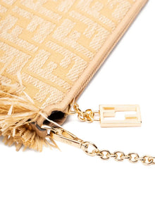 Step up your style game with the FENDI Baguette fringe-detail clutch bag. Made from beige Zucca-patterned fabric, this bag is the perfect mix of luxury and playfulness. The eye-catching fringe detailing adds a unique touch to this zip-closure bag, while the chain shoulder strap offers convenience and versatility. Make a statement with this quirky and chic accessory!
