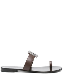 Step into elegance with these Giuseppe Zanotti leather slide sandals for women. Featuring a rich coffee brown hue, they combine a branded leather insole and durable leather sole for lasting comfort and style. The crystal embellishment adds a touch of sparkle, making these slides perfect for elevating any outfit effortlessly.