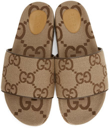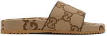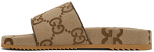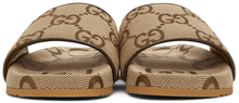 GUCCI Beige & Brown Maxi GG Slide Sandals