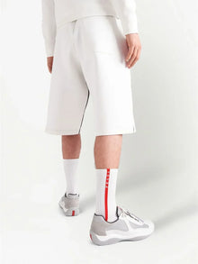 Step into style with Prada's America's Cup grey/white sneakers. Crafted with leather and mesh panelling for durability and breathability, these shoes feature a logo patch at the tongue and a chunky rubber sole for added comfort. Perfect for any adventure, lace-up and hit the ground running!