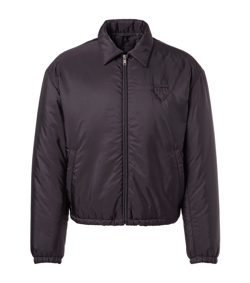 Prada redefines its signature aesthetic through responsible craftsmanship with this Re-Nylon padded jacket—made from regenerated ocean plastic waste. Crafted in Italy, the streamlined silhouette features the house’s iconic triangle logo at the chest, welt pockets, and an adjustable drawstring hem for a precise, modern fit. Technical, lightweight, and unmistakably Prada, it brings sustainability into sharp luxury focus.