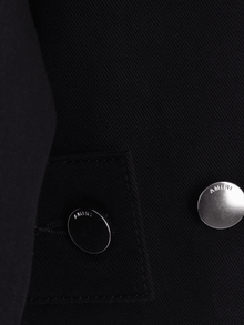 Get ready to rock in this AMIRI logo-print jacket. With a classic collar and front zip fastening, this jacket highlights a playful mix of black, cotton, and virgin wool. Stay cozy and stylish with this quirky jacket, perfect for any occasion. (No instructions revealed)
