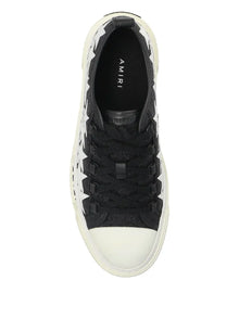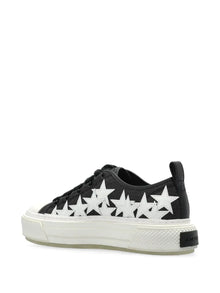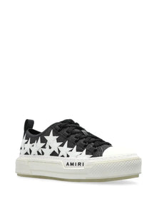 Step into style with the AMIRI Stars Court sneakers. These sneakers feature a front lace-up fastening and a pull-tab at the heel for easy-on convenience. The flat rubber sole and branded insole provide all-day comfort. The black and white design adds a bold touch to any outfit. Walk the stars with confidence!