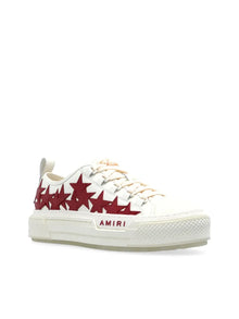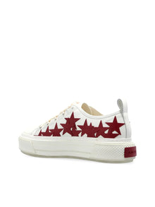 Step into style with the AMIRI Stars Court sneakers. These sneakers feature a front lace-up fastening and a pull-tab at the heel for easy-on convenience. The flat rubber sole and branded insole provide all-day comfort. The white and red design adds a bold touch to any outfit. Walk the stars with confidence!