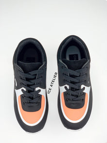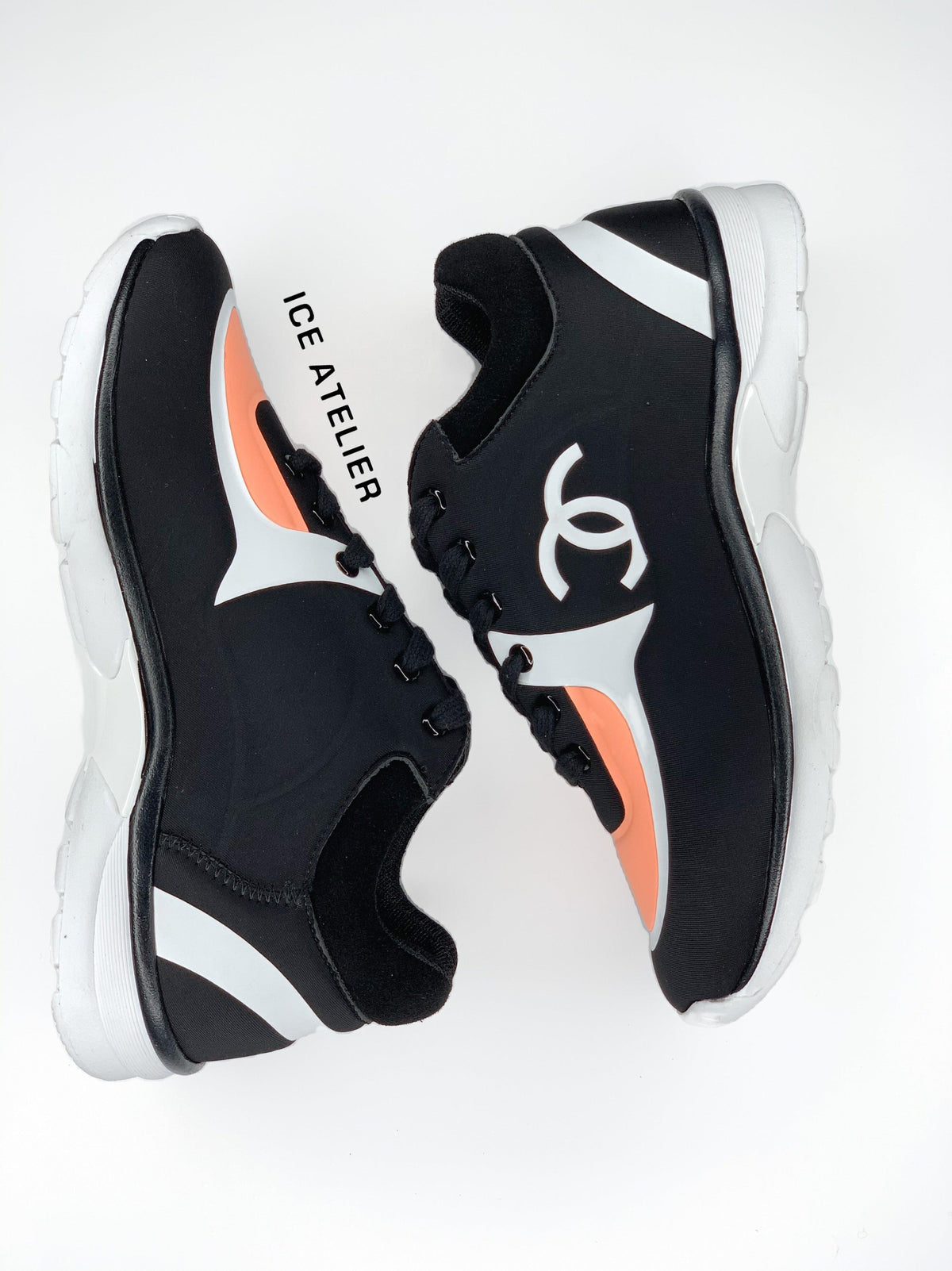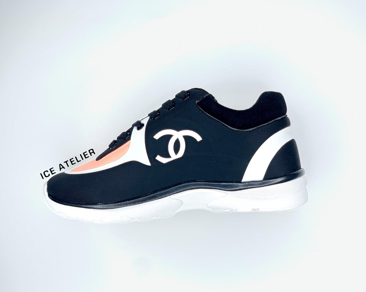 WOMEN CHANEL CC LOGO BLACK WHITE CORAL LYCRA SNEAKER
