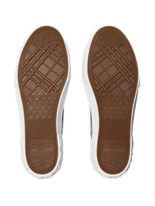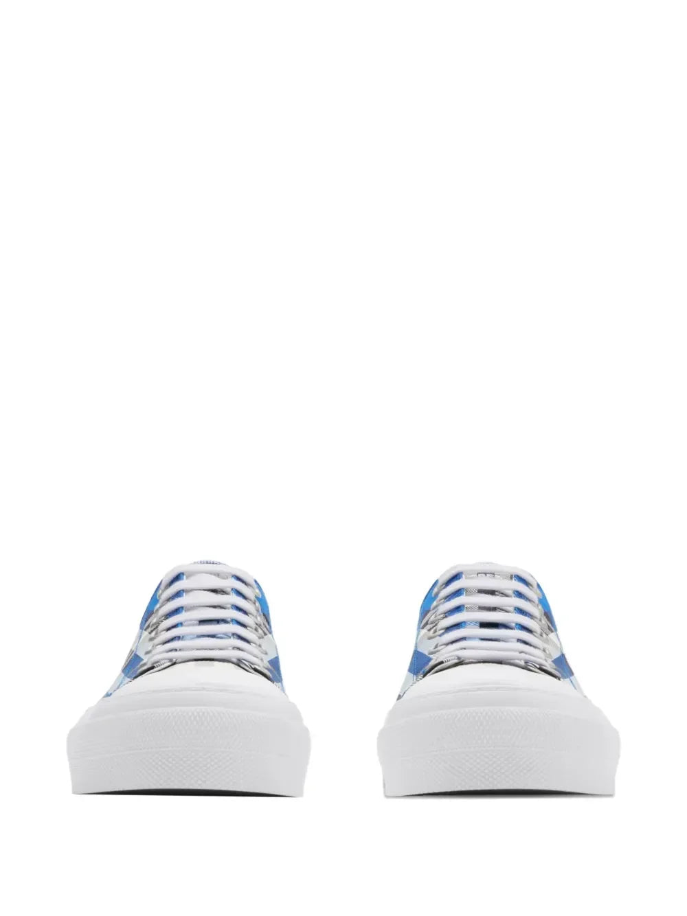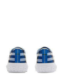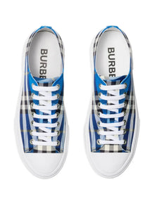 Step into style with these Burberry checked sneakers. Featuring a classic front lace-up fastening and a round toe, these sneakers are sure to elevate any outfit. The rubber toecap and flat rubber sole provide comfort and durability. Made with high quality materials including leather and cotton, these sneakers are a must-have for any fashion-forward individual.