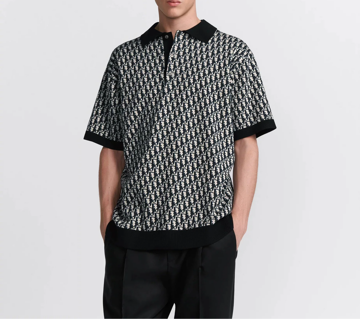 Dior elevates the polo shirt with its hallmark Oblique motif, a graphic signature of the house. Crafted in lightweight jacquard cotton, this Italian-made piece pairs refined detailing with everyday versatility, making it a polished essential for modern wardrobes.
