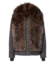 Moncler Grenoble brings its technical expertise to the Faite ski jacket, crafted from pure virgin wool and filled with soft down for exceptional insulation. Plush shearling trimming adds luxurious texture, while the snap-buttoned front and streamlined silhouette ensure ease of movement and sleek functionality on the slopes. A fusion of performance engineering and elevated winter style.