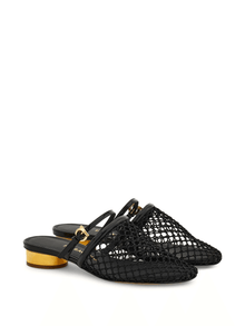 Slip into style with Ferragamo's 40mm Mesh mules. The black mesh detailing adds a touch of chic to these versatile shoes, while the buckle-fastening slingback strap ensures a secure fit. With a block heel and a composition featuring a mix of materials, these mules are both comfortable and fashionable.