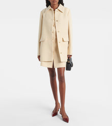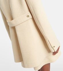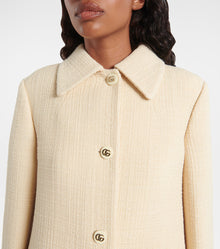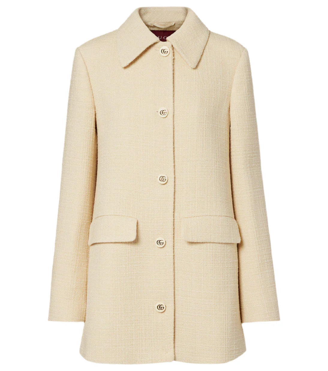 Experience timeless elegance with the Gucci Double G wool-blend tweed coat. Crafted from luxurious wool-blend tweed, this single-breasted coat features iconic gold-toned Double G button fastenings and practical front flap pockets. Its classic design pays homage to Gucci’s heritage while offering a sophisticated look that elevates any outfit. Perfect for those who appreciate refined style and lasting quality.