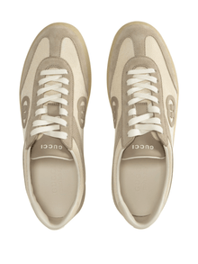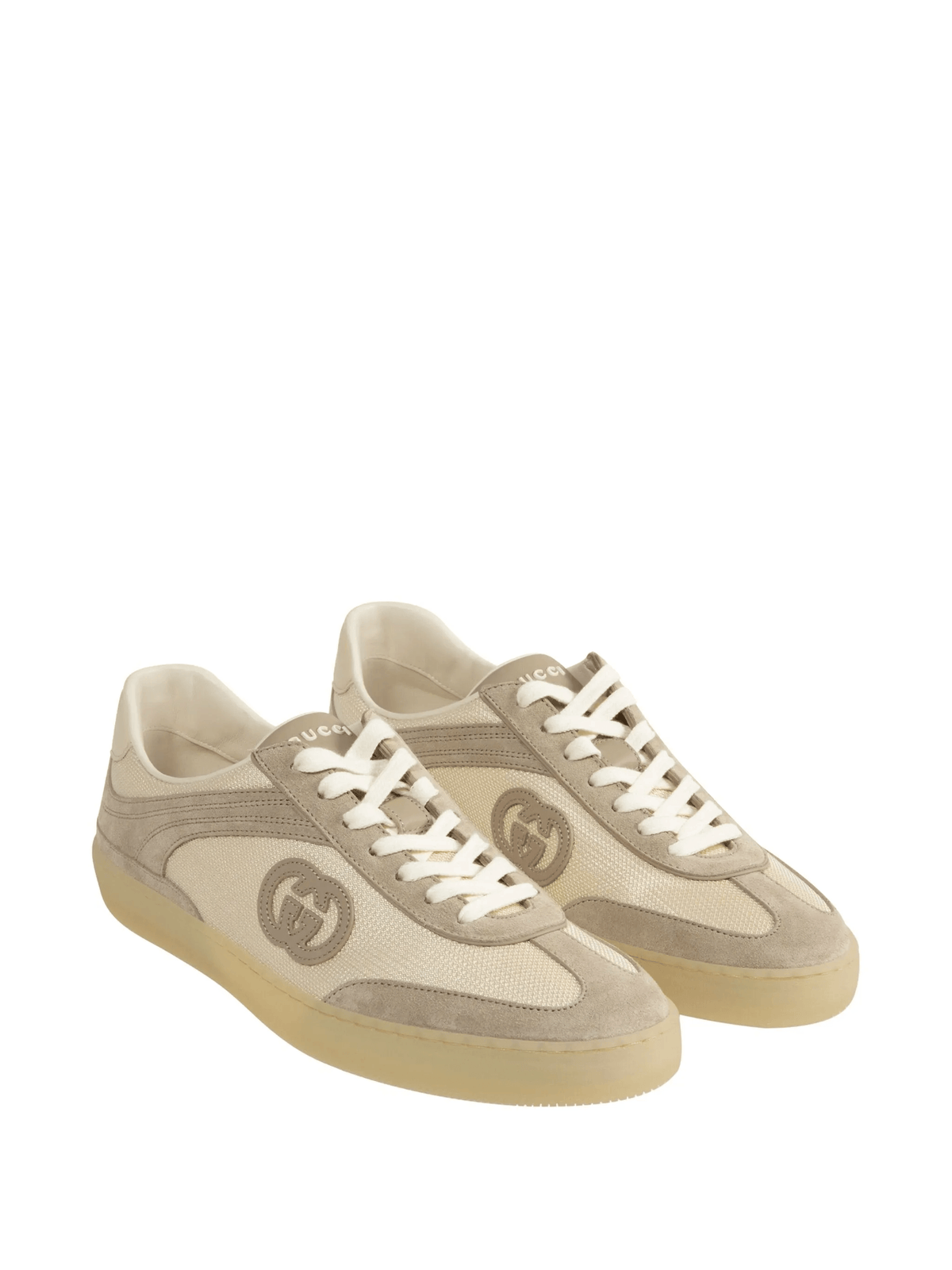 Add a stylish touch to your wardrobe with the Gucci G74 sneakers. These sneakers feature a beige color, front lace-up fastening, and a signature Interlocking G logo. The rubber sole and branded leather insole provide comfort and durability. Made with high-quality materials, these sneakers are a must-have for any fashion-forward individual.