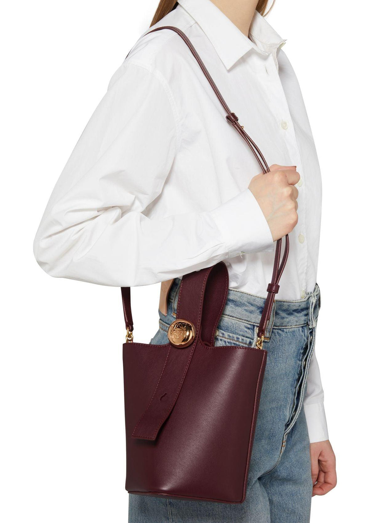 Upgrade your wardrobe with LOEWE's Mini Pebble bucket bag. A chic and versatile accessory, this bag features a spacious compartment, an engraved gold logo, and a wide strap for comfortable hand carrying. With the option to wear it on your shoulder or crossbody, it's the perfect addition to your daily outfit.