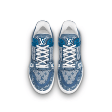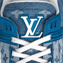 Created by Louis Vuitton Artistic Director Virgil Abloh, the cult LV Trainer sneaker is revisited in Monogram denim in different shades of blue. Inspired by vintage basketball sneakers, this design features an innovative gel-injected outsole, which is decorated with a motif of Monogram Flowers.