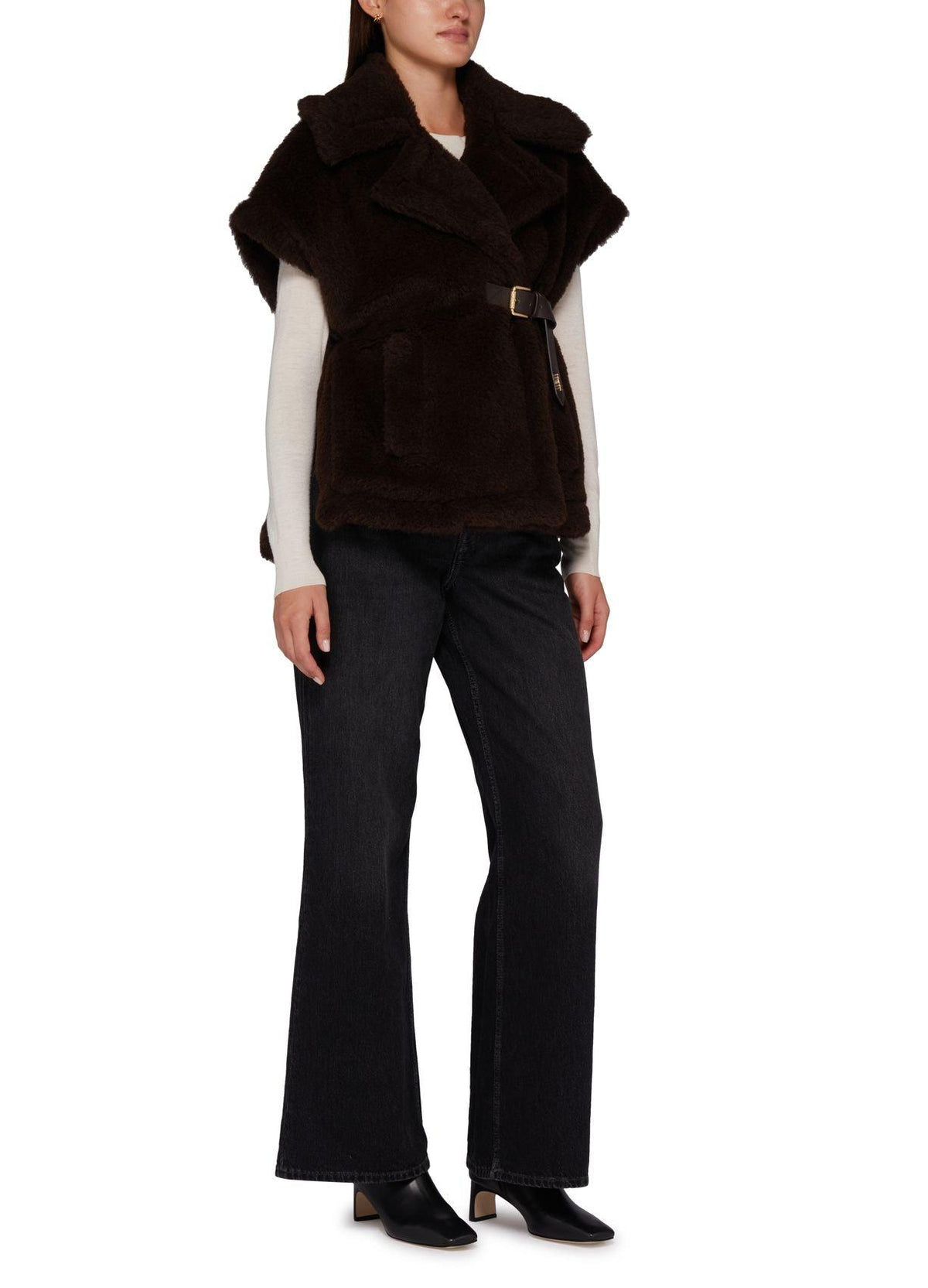 DESCRIPTION : fur detail, appliquéd logo, logo at the back label, regular length, v-neck, short-sleeved, bell sleeve.
