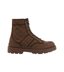 Crafted in Italy from durable GG-print canvas, the design features a rounded toe, lace-up closure, and the unmistakable green and red Web stripes — a timeless signature introduced in 1951.