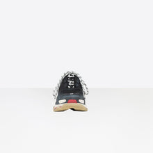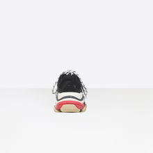 • Bold Balenciaga collectible sneakers • Complex 3-layered sole designed after running, athletics and basketball sneakers archetypes • Embroidered size at the edge of the toe • Embroidered logo on the side • Embossed logo in the back • Triple S rubber branding on the tongue • 2 laces loops including 1 functional • Athletic lacing system featuring 12 fabric eyelets • Bicolor laces recalling hiking boots’ laces • Back pull-on tab and tongue pull-on tab • Washed effect for a well-worn look • Wipe with a soft clean cloth • The item comes with a Balenciaga dustbag and box
