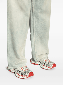 Looking to make a bold statement with your footwear? Look no further than the Balenciaga 3XL Extreme Lace sneakers. These eye-catching sneakers feature a unique rear lace-up fastening for a secure fit, along with mesh panelling and a rubber sole for added comfort. Made with high-quality materials, these sneakers are sure to turn heads wherever you go.