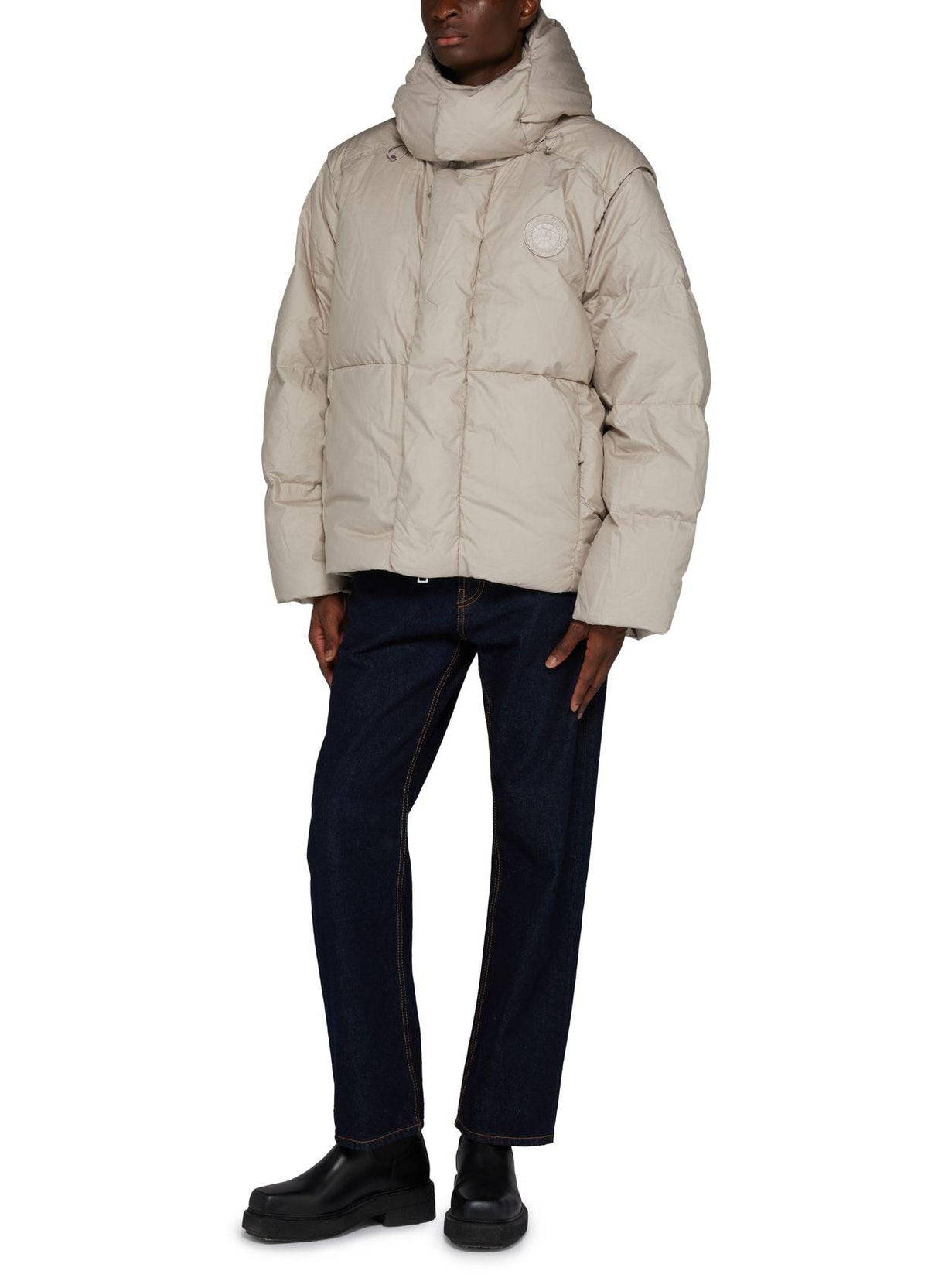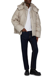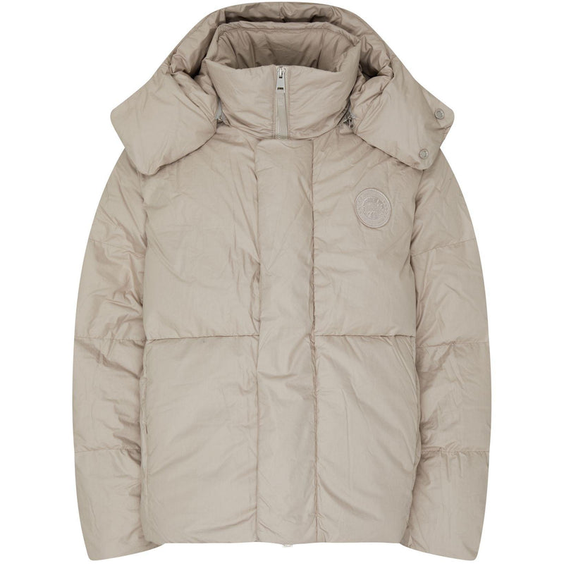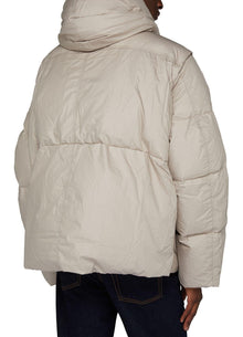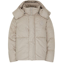DESCRIPTION : concealed closure, chest logo, front logo, short, hood, long-sleeved, puffer jacket, side welt pockets.