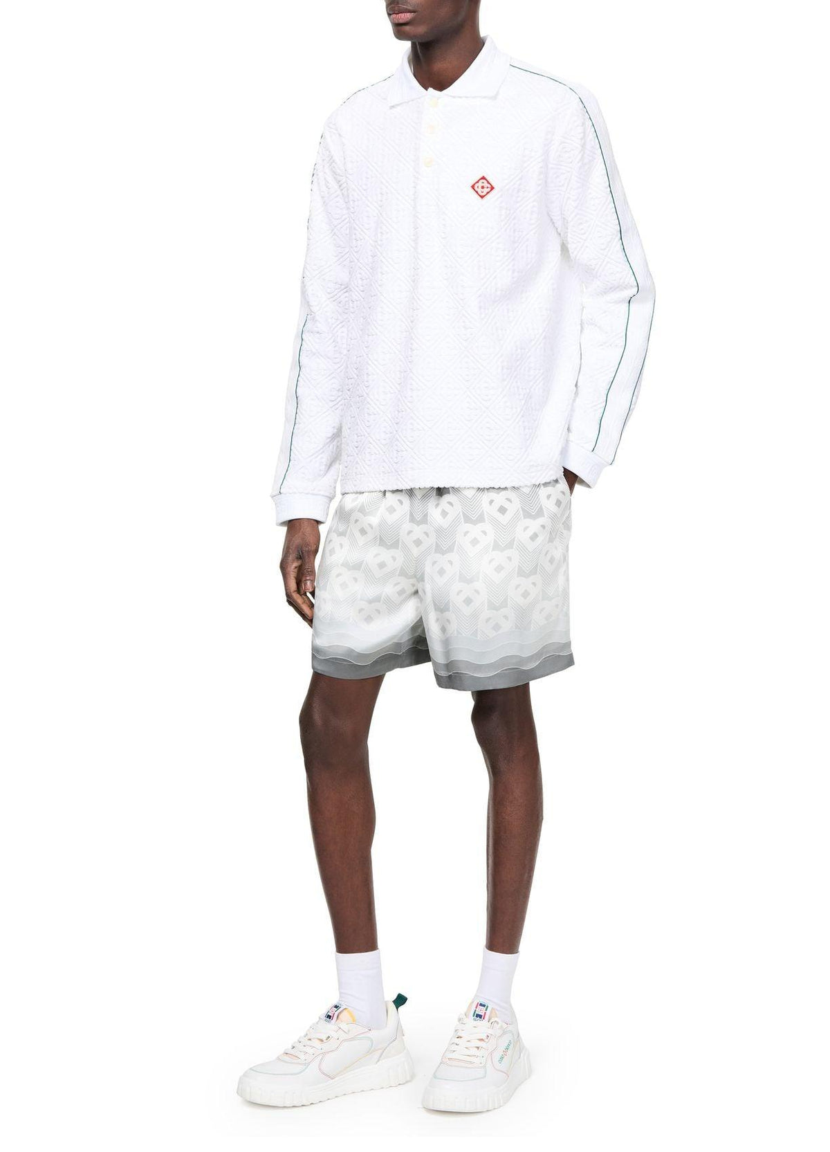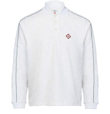 DESCRIPTION : front buttoned closure, chest logo, visible stitching, long-sleeved, polos, polo-shirt collar.
