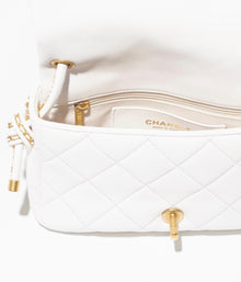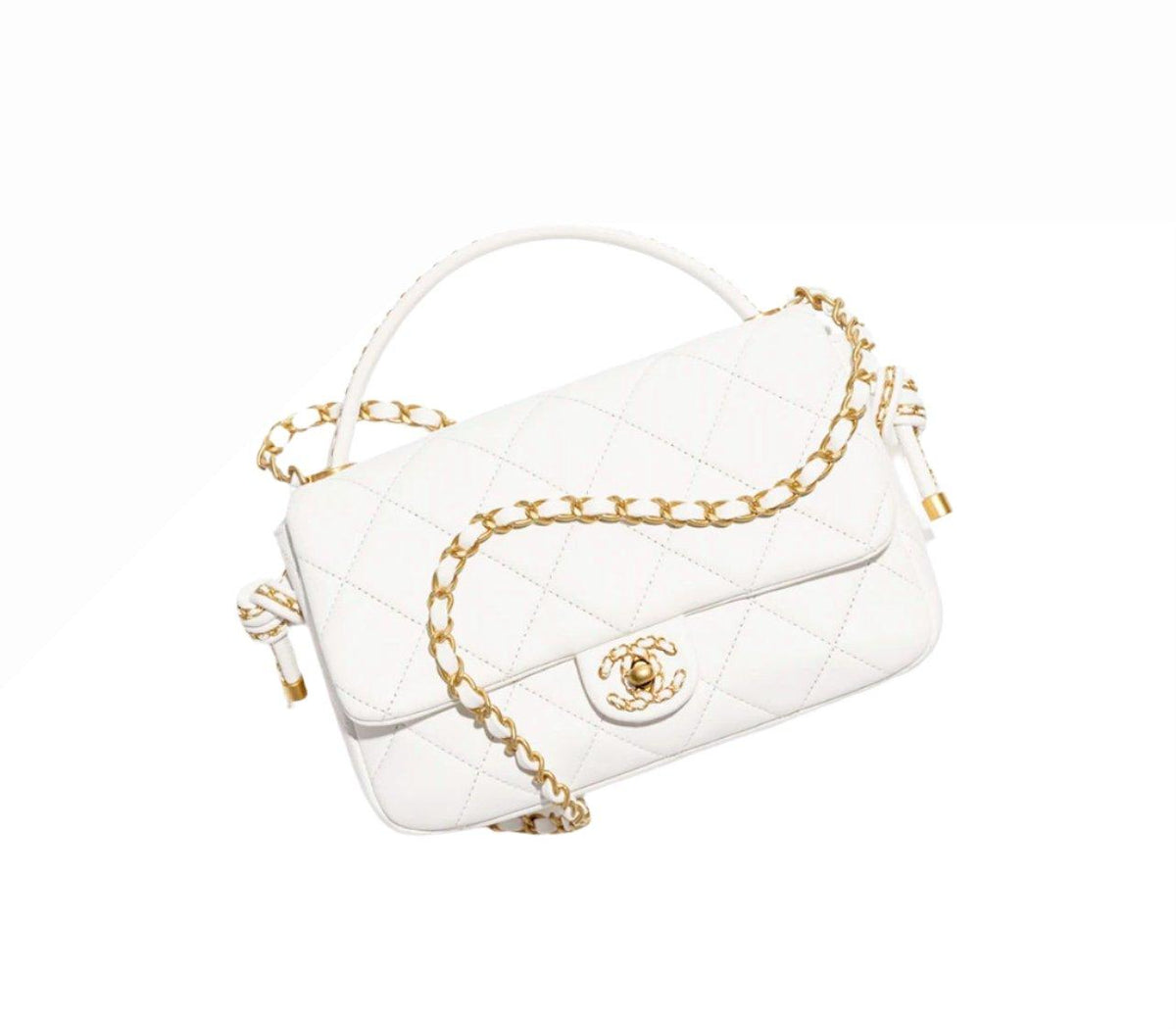 Chanel Top Handle Flap Bag Lambskin & Gold Metal White
