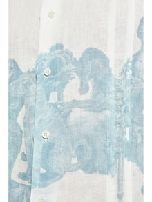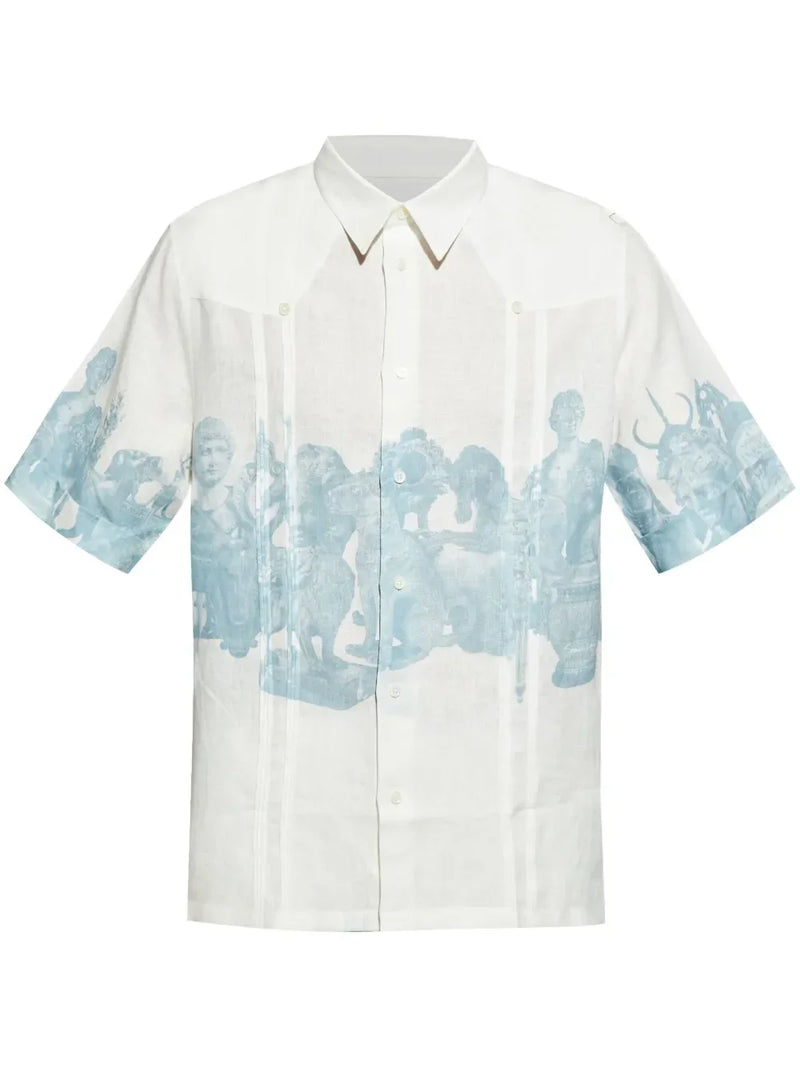 Elevate your style with this Givenchy graphic-print shirt. Its bold white and blue print will make a statement, and the front button fastening and classic collar add a touch of sophistication. The short sleeves and straight hem create a comfortable fit for any occasion.