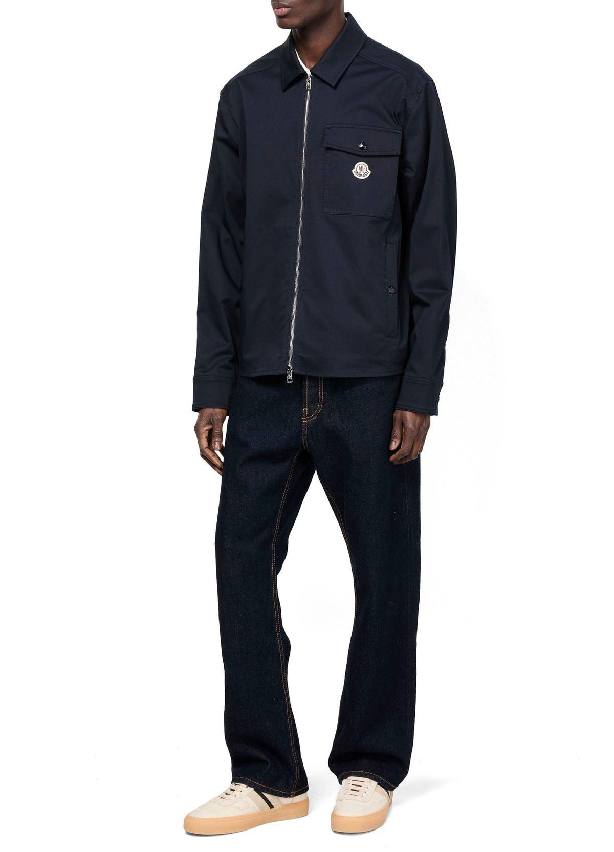 Experience comfort and style with our MONCLER Shirt in navy! This long-sleeved shirt features a chest logo and visible stitching for a polished look. The flap and breast pockets provide functionality, while the cuffed sleeves and buttoned cuffs add a touch of sophistication. Perfect for any occasion, our casual shirt with a shirt collar is a must-have addition to your wardrobe.