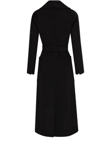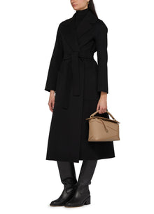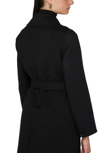 The S MAX MARA Paolore belted coat is a versatile wardrobe essential. Made from 100% virgin wool in a classic nero color, this long-sleeved coat features a notched collar and a logo at the back label. The belted design adds a touch of sophistication and allows for a customizable fit. Two front pockets provide convenient storage for your essentials. Stay warm and stylish in this must-have piece.