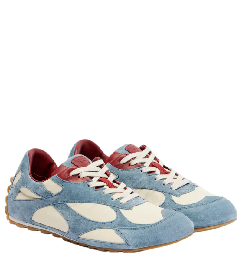 Bottega Veneta elevates contemporary street style with the Orbit Flash sneakers, a low-top silhouette crafted in Italy with suede trims and fabric panels. Featuring a fresh Ice/Sea Salt palette, leather insoles, and rubber soles, this design blends artisanal craftsmanship with everyday wearability.