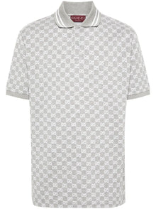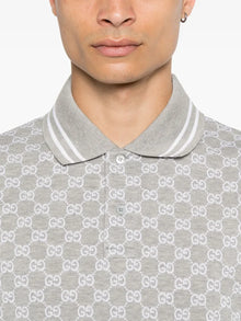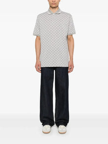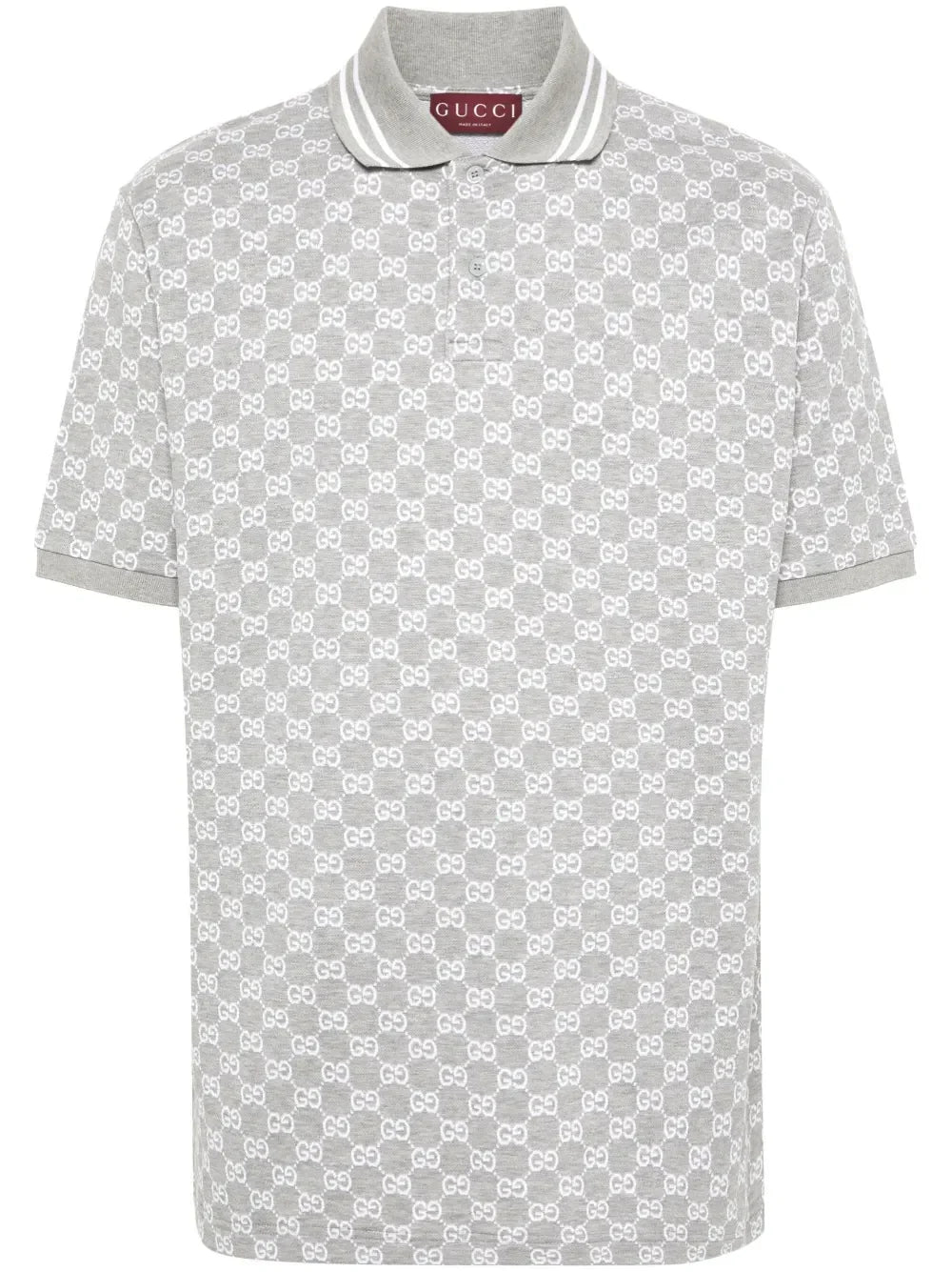 Add some designer flair to your wardrobe with the Gucci GG jacquard polo shirt. Made from 100% cotton with a piqué weave, this polo features a signature GG Damier jacquard design, a classic polo collar, and a button placket. The short sleeves with ribbed cuffs, short side slits, and straight hem add a touch of style and versatility.