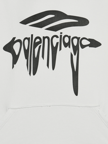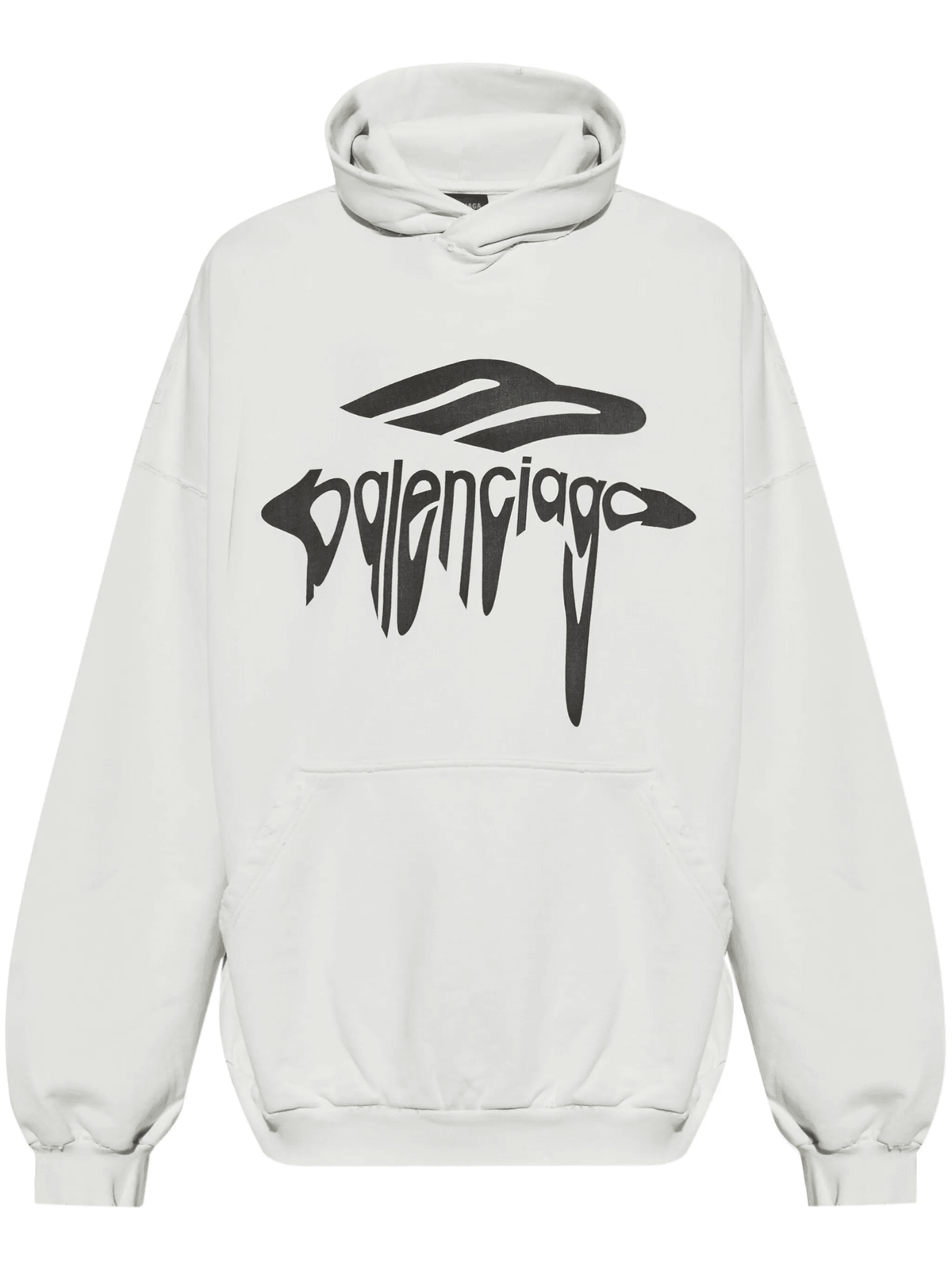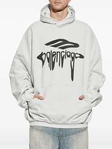 This Balenciaga 3B Liquified hoodie highlights your style with its classic hood, front pouch pocket, and long sleeves. Made of 100% cotton, it provides comfort and a touch of luxury. Perfect for cozy days or as a statement piece.
