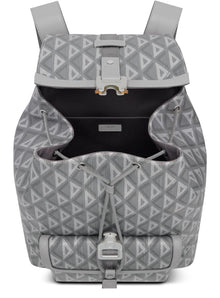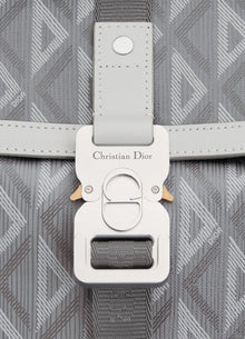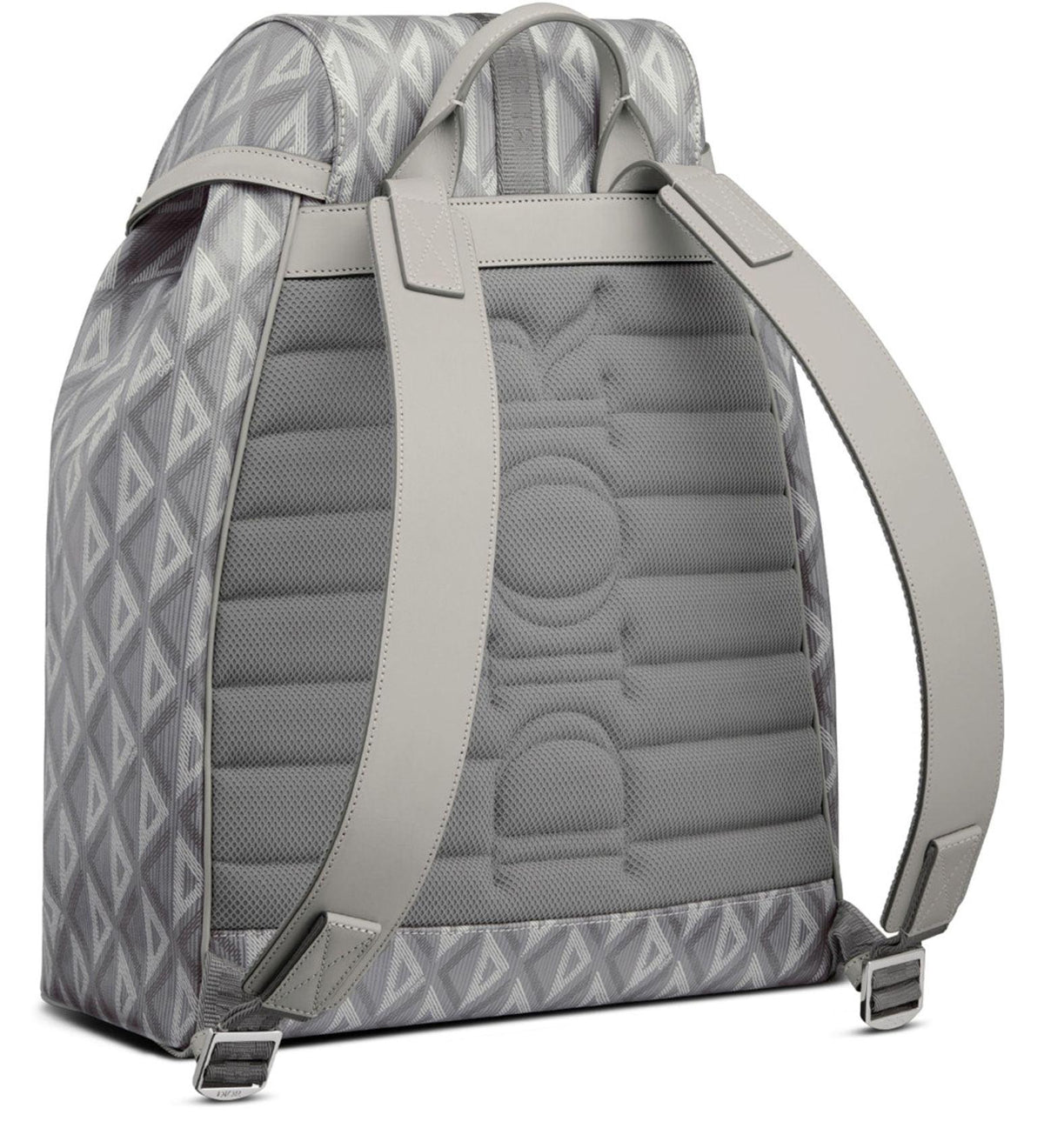 DESCRIPTION : CD Diamond canvas, ruthenium-finish brass Dior signature on front, embossed Dior signature on interior, christian Dior nylon jacquard band, flap and drawstring closure, aluminum buckle with Christian Dior signature and CD initials, adjustable shoulder straps in leather and padded technical mesh, leather handle, back of bag reinforced with quilted technical knit featuring the , dust bag included.