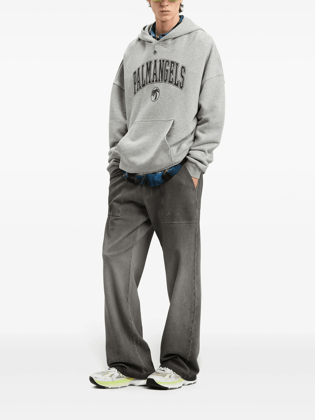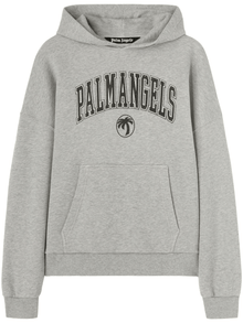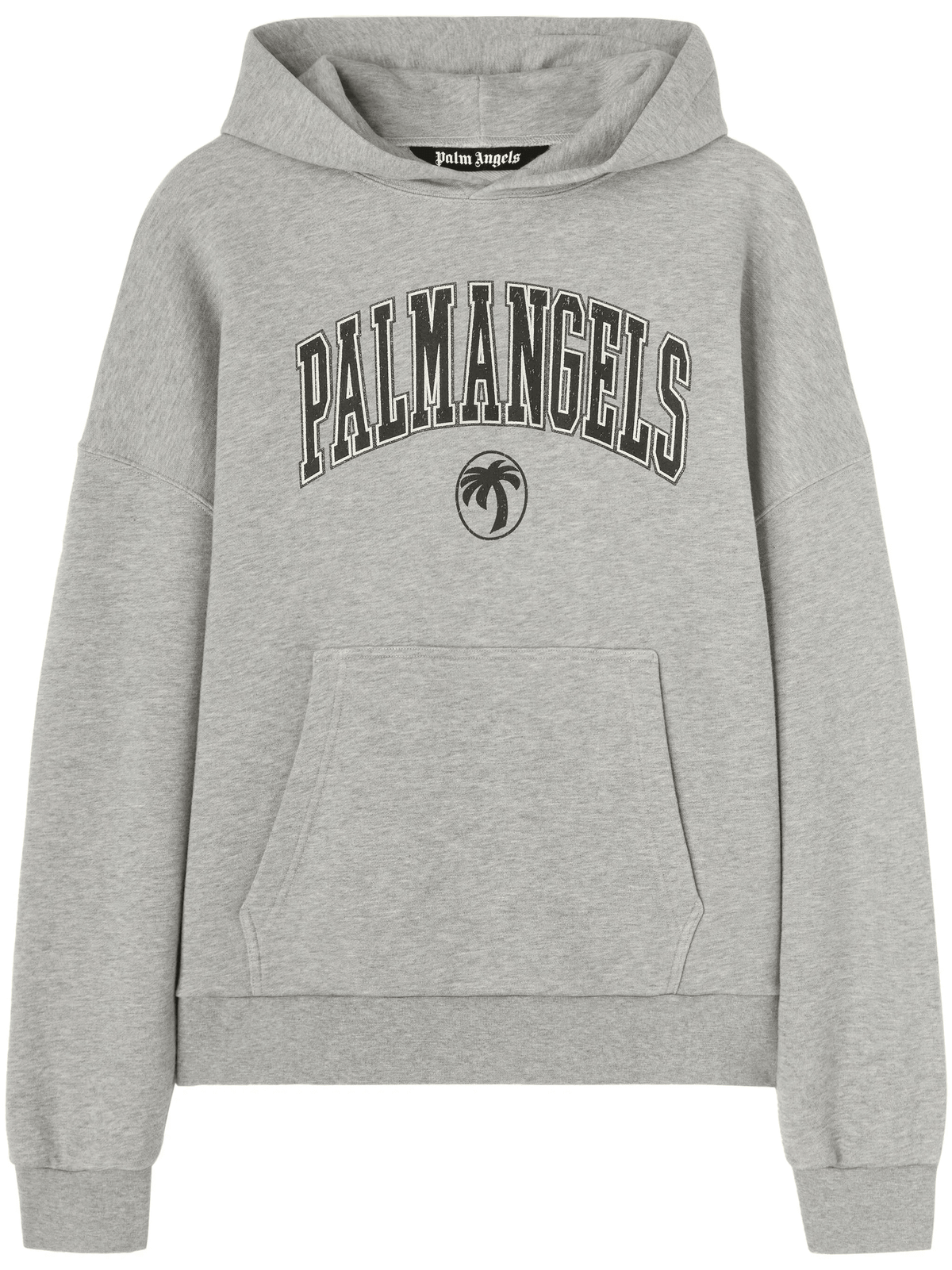 Stay cool and cozy in the Palm Angels College Palm hoodie. With a stylish light grey color, front pouch pocket, and logo print, this 100% cotton hoodie will keep you comfortable all day long. Perfect for lounging or layering, this hoodie is sure to be a wardrobe favorite!