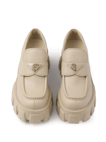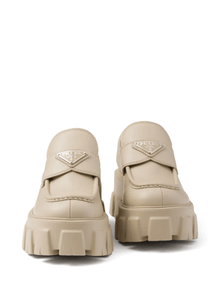 Prada Monolith sand beige triangle-logo loafers