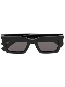 Look sharp and stylish with Saint Laurent Eyewear's SL 572 sunglasses. Crafted from jet black acetate, these square frames feature tinted lenses and UV protection for a laid-back yet protective look. Complete with a logo plaque at the arm and a protective case, these sunglasses are a must-have for any fashion-forward individual.