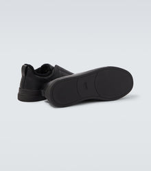 Zegna’s iconic Triple Stitch™ sneakers are reimagined in supple black deer leather, offering a sleek, understated expression of modern luxury.