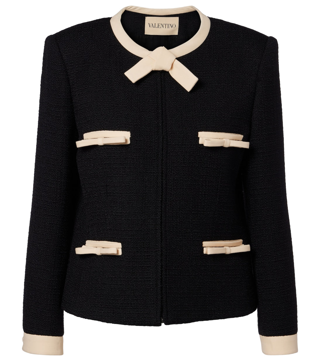 Turn to Valentino for refined ensembles defined by exceptional quality. Crafted from wool-blend tweed, this jacket showcases pastel-hued trims and charming bow details that add sophistication to the look.