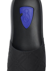 Step into effortless style with these Burberry Embossed Check Dive Slides. Featuring a sleek black check pattern and convenient slip-on design, they offer both fashion and ease. The round open toe and moulded footbed provide comfort for all-day wear, while the flat rubber sole ensures reliable grip. Perfect for casual outings or relaxing at home, these slides combine iconic design with practical comfort.