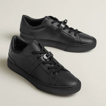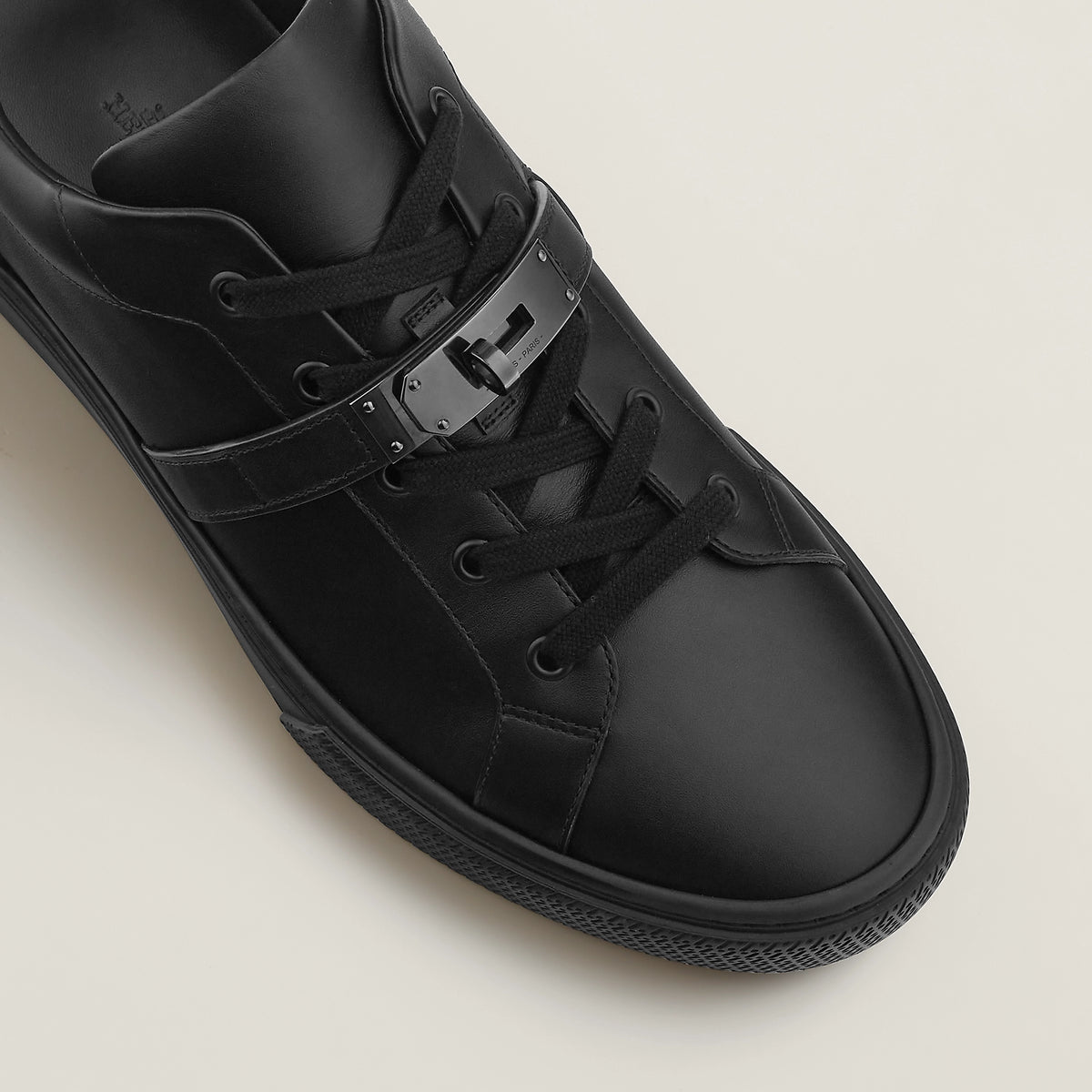 The Day sneaker channels Hermès’ refined leather heritage into a sleek, monochromatic silhouette. Crafted in Italy from smooth calfskin, this all-black edition is defined by its functional Kelly buckle—shiny PVD-plated hardware that elevates the design with subtle sophistication. Modern, streamlined, and quietly powerful, it brings Parisian luxury to everyday urban wear.