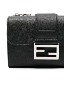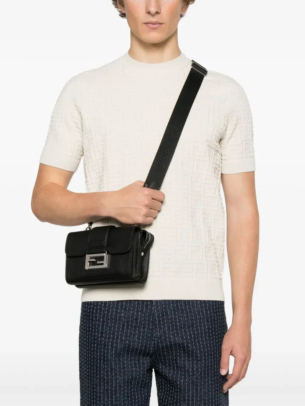 Get double the style with the FENDI Double Baguette Crossbody Bag. This black bag features a convenient foldover top with magnetic and top zip fastenings, as well as an adjustable detachable shoulder strap for versatile wear. Complete with the iconic FF motif, stand out in this playful and stylish bag.