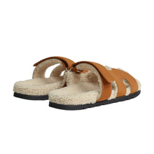Step into comfort and style with the Hermes Chypre Shearling Sandal. Made with suede goatskin and lined with cozy shearling, these techno-sandals provide a sleek and comfy fit. The anatomical rubber sole and adjustable strap add to the overall comfort, perfect for a casual and chic look.
