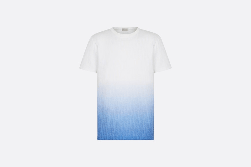 Camiseta Dior de punto degradado en blanco y azul con motivo Dior Oblique por toda la prenda