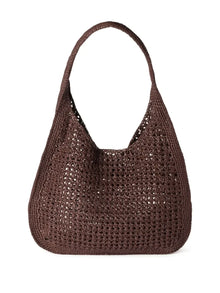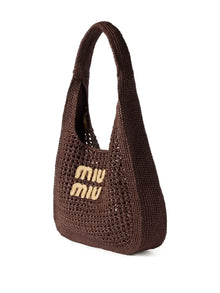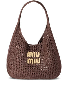 Add a touch of bohemian chic to your wardrobe with the Miu Miu Raffia-effect woven shoulder bag. The brown color and single top handle make it versatile for any outfit, while the open top and main compartment provide easy access to your belongings. Made with 100% viscose, this unlined bag is both stylish and sustainable.