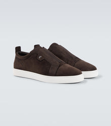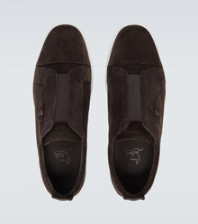 Christian Louboutin brings refined simplicity to everyday footwear with the St Louis slip-on sneakers. Crafted in Italy from supple Café suede, the silhouette features flexible vamps, an almond toe, and an elasticated strap for effortless comfort. Finished with the Maison’s iconic red rubber sole, each step delivers unmistakable Louboutin sophistication.
