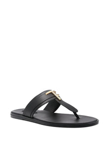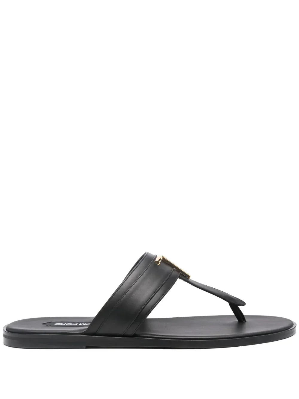 Slide into style with TOM FORD's Brighton sandals. Made of smooth calf leather, these thong sandals feature a gold-tone logo plaque for a touch of luxury. Slip-on and go with their convenient design, perfect for any occasion. Complete with a comfortable branded leather insole and flat leather sole.