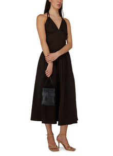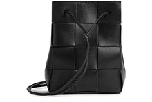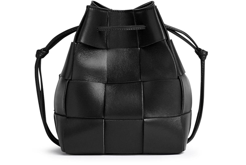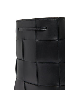 DESCRIPTION : Single interior open pocket, drawstring closure, intreccio leather, thin strap.